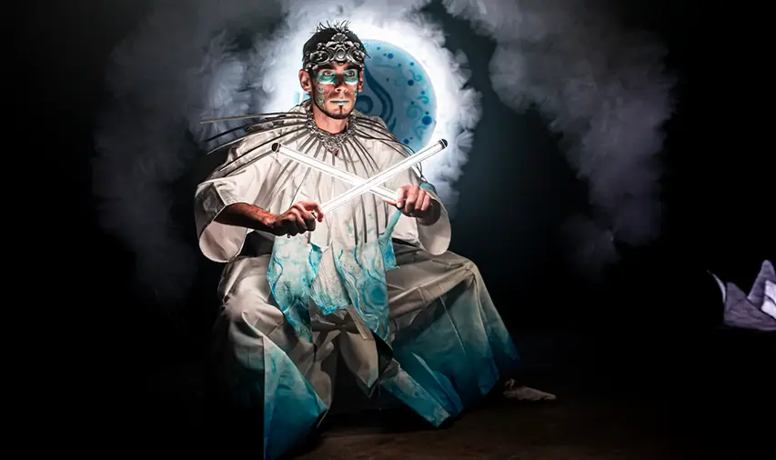 Le spectacle de jonglage lumineux spectacle utilise les mouvements de matériel LED multiple : éventails, bolas, cerceaux lumineux, poï de lumière, etc. Notre compagnie instaurer une atmosphère onirique et soignée, qui entraîne le spectateur dans une flânerie fantastique.